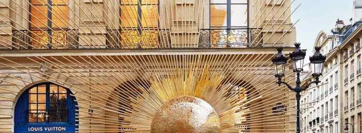 Illustration with Louis Vuitton's luxury flagship, the Place Vendôme in Paris. An inspirational space, a veritable museum-boutique of 1700 m2 on 4 floors, where works of art and Vuitton cigars cohabitate - an immersive experience where an advisor in charge of transmission invites clients to a tailor-made discovery.